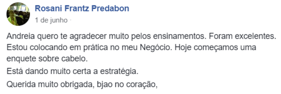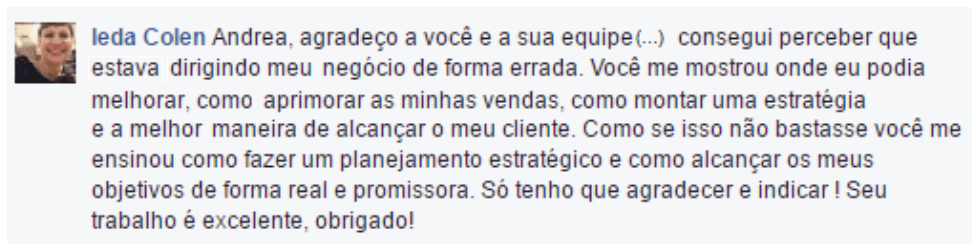 "Agora eu tenho mais clareza sobre o que é meu negócio e pra onde direcioná-lo."